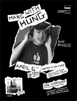 While doing my internship with Universal Buzz Intelligence I was given the responsibility to design flyers for William Hung, the rejected American Idol contestant. Fuse TV, the client, left all design decisions to me, only dictating the exact copy to be used. 20,000 copies of this design were printed and posted nationwide.